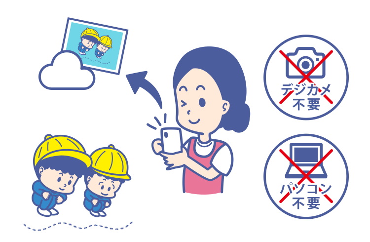 数名で撮影するときはスマホやタブレットも使っており、写真のアップや確認が直接アプリでできるので便利に使っています。ふだんは見ていただけない園での日常の様子を届けやすくなり助かっています。